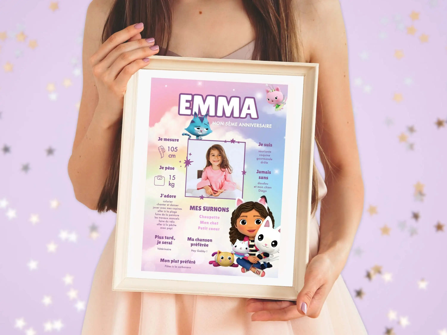 Ob dezenter Akzent oder Blickfang als Blickfang, unser Jubiläumsposter ist in den Größen A4, A3 oder 50x70 cm erhältlich. Es passt perfekt in Ihre Dekoration und sorgt für echte Harmonie rund um das gewählte Thema. Ihrem Kind eine Welt zu bieten, die ihm ähnelt, und zu sehen, wie sein Gesicht strahlt, wenn es jedes für es entworfene Detail entdeckt, ist viel mehr als nur ein Geburtstag: Es ist die Schaffung einer unvergesslichen Erinnerung, die im Gedächtnis der ganzen Familie verankert ist.