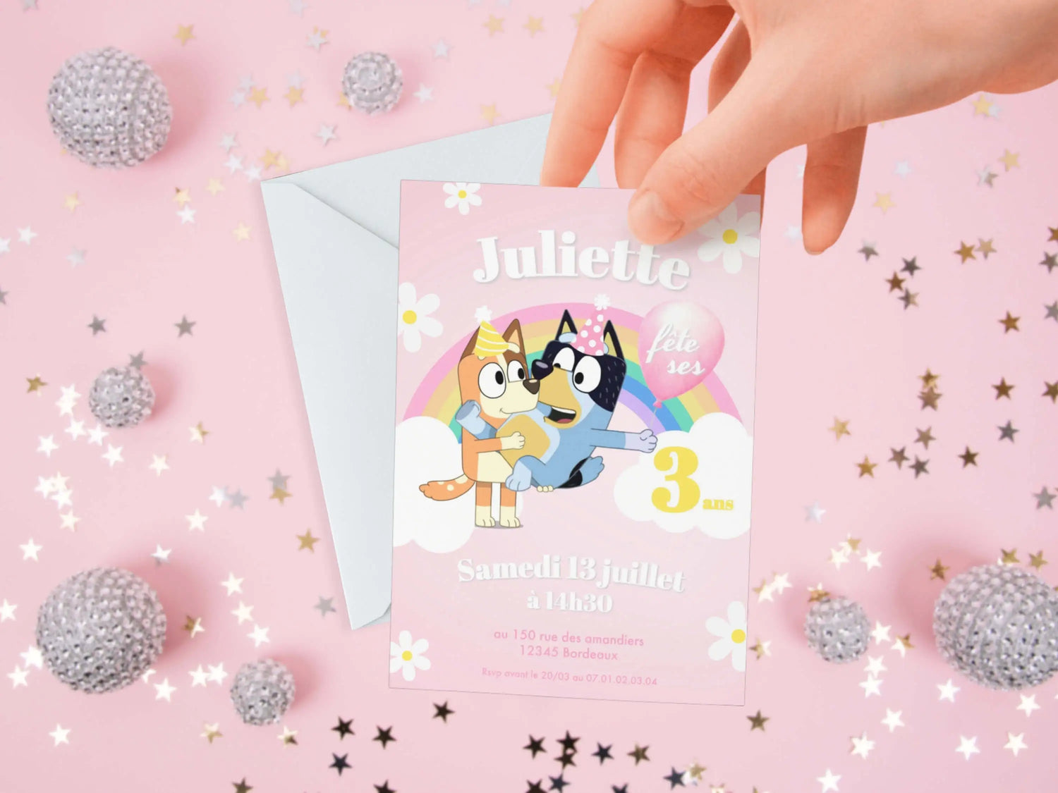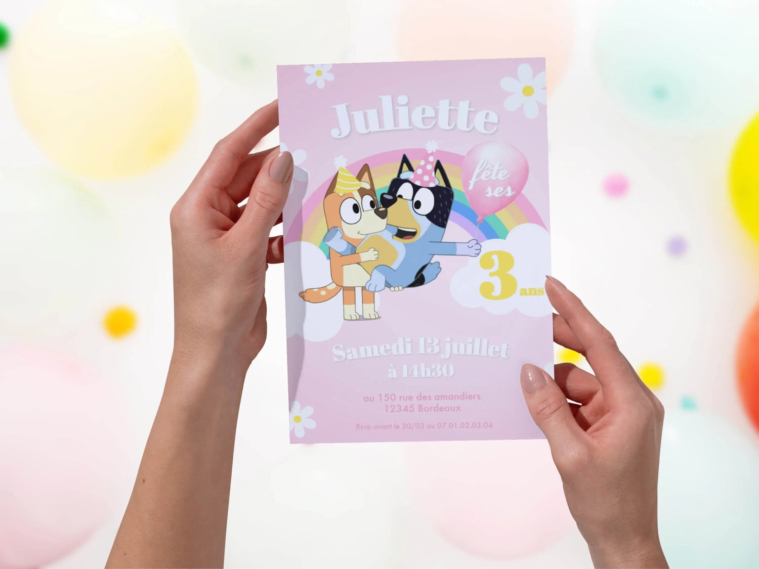 Machen Sie den Geburtstag Ihres Kindes zu einem einzigartigen Ereignis mit unseren personalisierten BLUEY-Einladungen. Sie werden in 10 Exemplaren auf hochwertigem Papier gedruckt und verfügen über ein maßgeschneidertes Design mit oder ohne Umschlag. Einfache Personalisierung mit unserem Online-Tool für einzigartige und unvergessliche Einladungen.