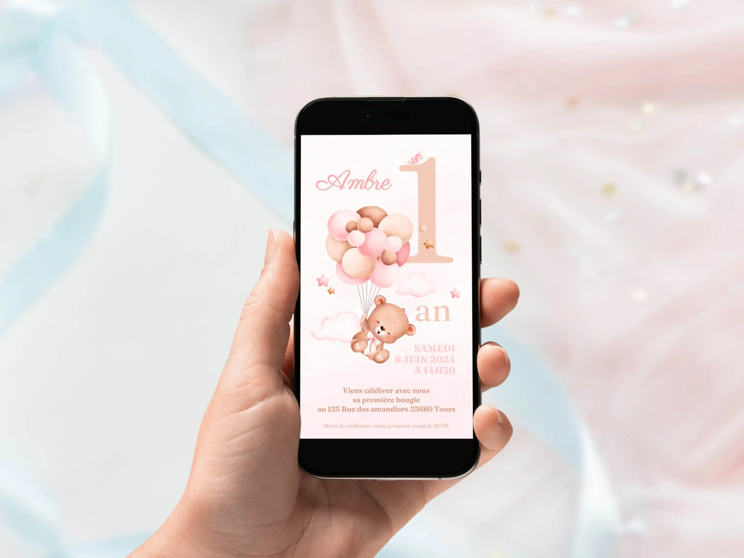Laden Sie Ihre Gäste stilvoll mit unserer personalisierten mobilen Einladung PINK BEAR ein. Diese digitale Einladung eignet sich perfekt für den ersten Geburtstag Ihres Babys und kann direkt per Nachricht versendet werden . Personalisieren Sie es ganz einfach auf CANVA und beeindrucken Sie Ihre Gäste mit einem einzigartigen, hochwertigen Design .