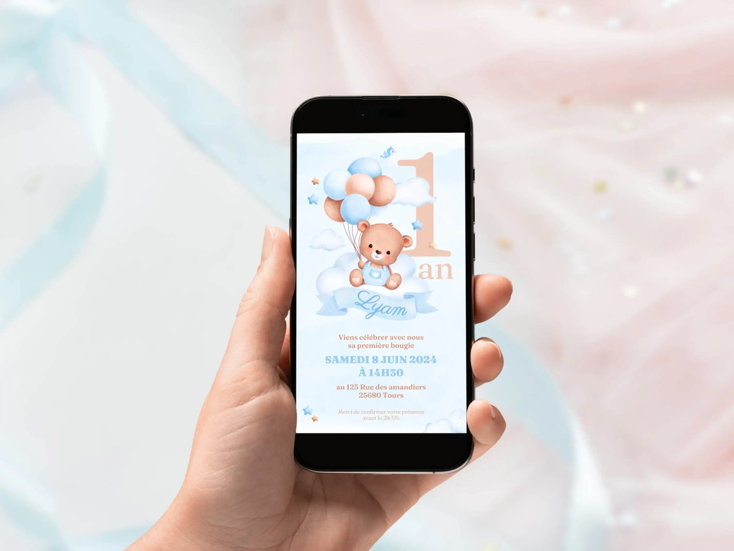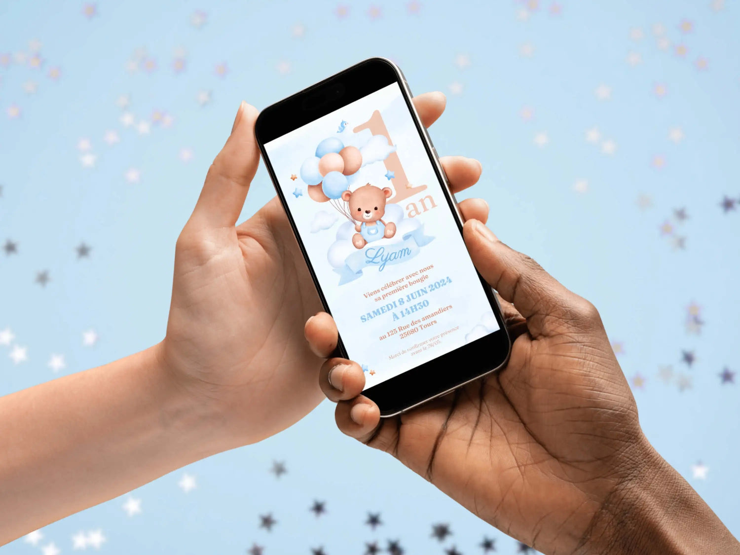 Sorgen Sie vom ersten Moment an für Aufsehen, indem Sie uns mit unserer personalisierten digitalen OURSON-Geburtstagseinladung einladen, die Sie per Nachricht, WhatsApp oder E-Mail versenden können . Dieses praktische, schnelle und 100 % digitale Format ist ideal für eine stressfreie Party. Personalisieren Sie Ihre mobile Einladung ganz einfach online über Canva : Vorname, Alter, Datum, Ort … alles lässt sich mit wenigen Klicks ändern, ohne Software. Nach der Validierung kann Ihre digitale Einladung heruntergeladen und an Ihre Gäste gesendet werden. Diese individuell gestaltete, hochwertige Karte ist für den Kindergeburtstag konzipiert und ermöglicht eine stilvolle Einladung ohne Druck und ist sofort verfügbar .