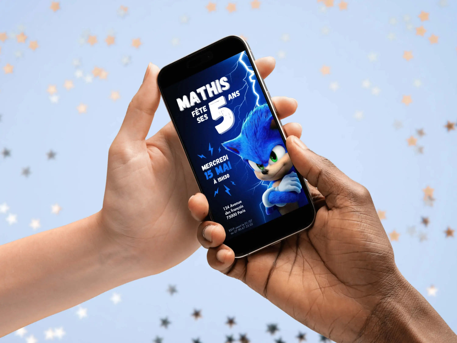 Sorgen Sie vom ersten Moment an für Aufsehen, indem Sie uns mit unserer personalisierten digitalen SONIC-Geburtstagseinladung einladen, die Sie per SMS, WhatsApp oder E-Mail versenden können . Dieses praktische, schnelle und 100 % digitale Format ist ideal für eine stressfreie Party. Personalisieren Sie Ihre mobile Einladung ganz einfach online über Canva : Vorname, Alter, Datum, Ort … alles lässt sich mit wenigen Klicks ändern, ohne Software. Nach der Validierung kann Ihre digitale Einladung heruntergeladen und an Ihre Gäste gesendet werden. Diese individuell gestaltete, hochwertige Karte ist für den Kindergeburtstag konzipiert und ermöglicht eine stilvolle Einladung ohne Druck und ist sofort verfügbar .