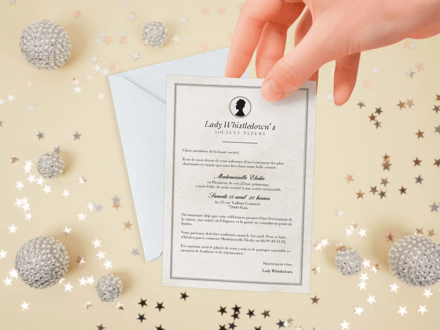 Unsere gedruckten BRIDGERTON-Einladungskarten sind in 10er-Packungen mit oder ohne weißen Umschlägen erhältlich. Jede Einladung wird auf 350 g/m² starkem Papier mit professionellem Druckverfahren gedruckt, um ein hochwertiges Ergebnis zu erzielen.