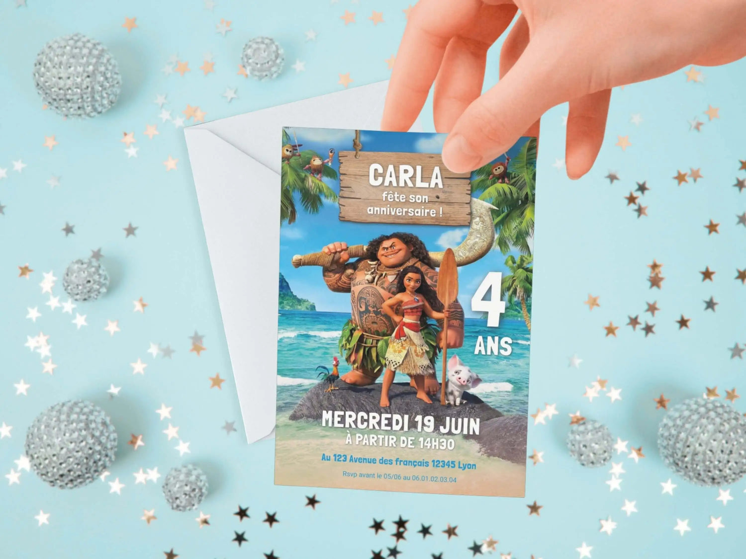 Machen Sie ihren Geburtstag zu einem magischen Moment mit unseren personalisierten VAIANA-Einladungen. Jedes Set mit 10 Karten wird professionell auf dickem 350 g/m²-Papier gedruckt , mit oder ohne weißen Umschlägen.