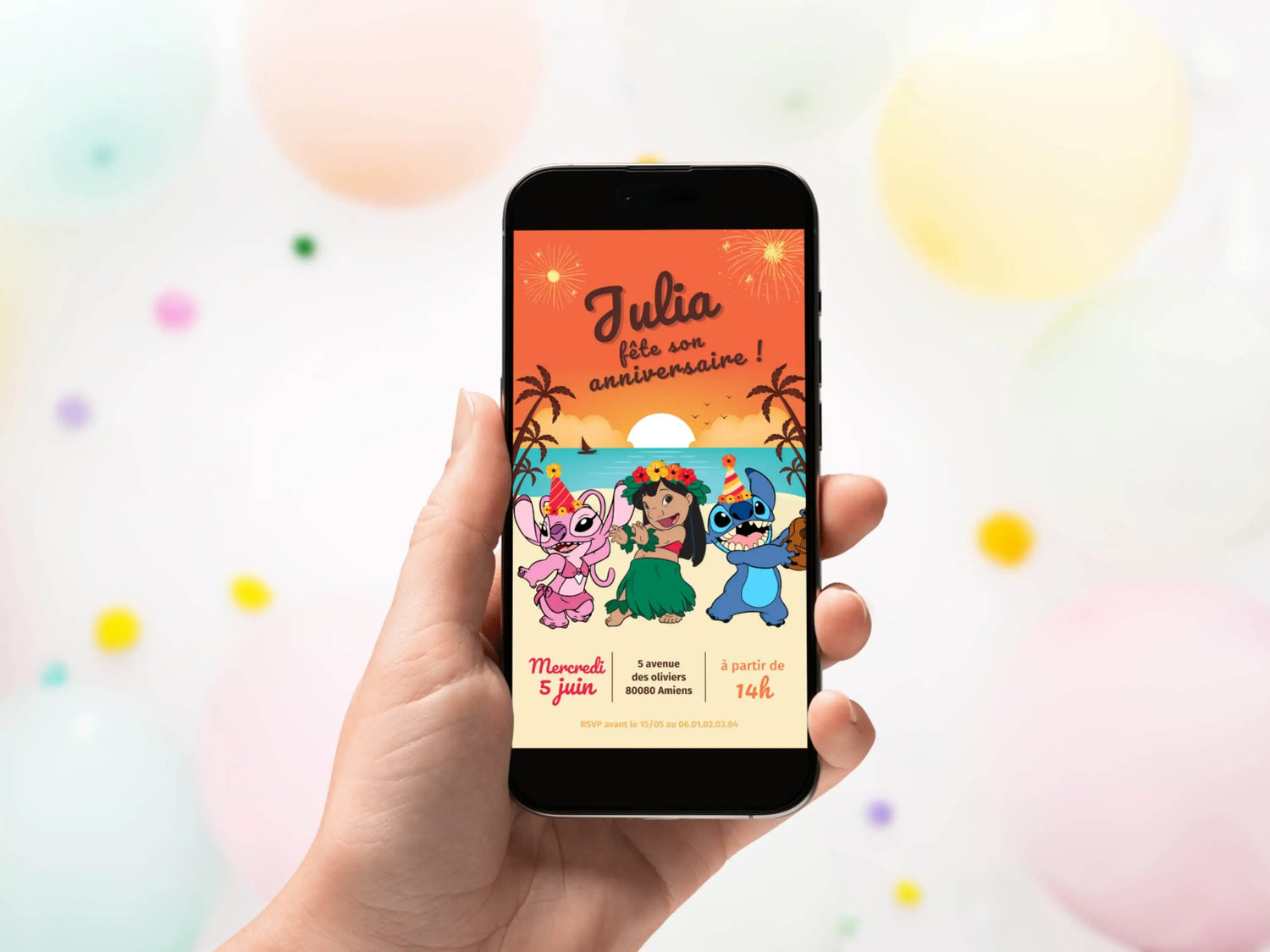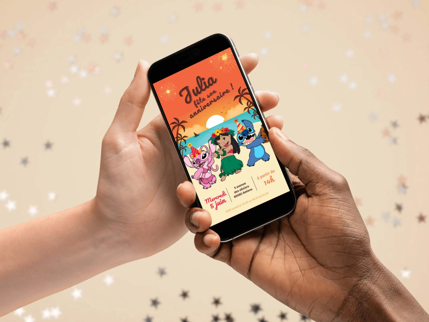 Invite your guests in style with our personalized LILO, STITCH and ANGEL mobile invitation. Perfect for children's birthdays , this digital invitation can be sent directly by message . Easily customize it on CANVA and impress your guests with a unique and quality design .