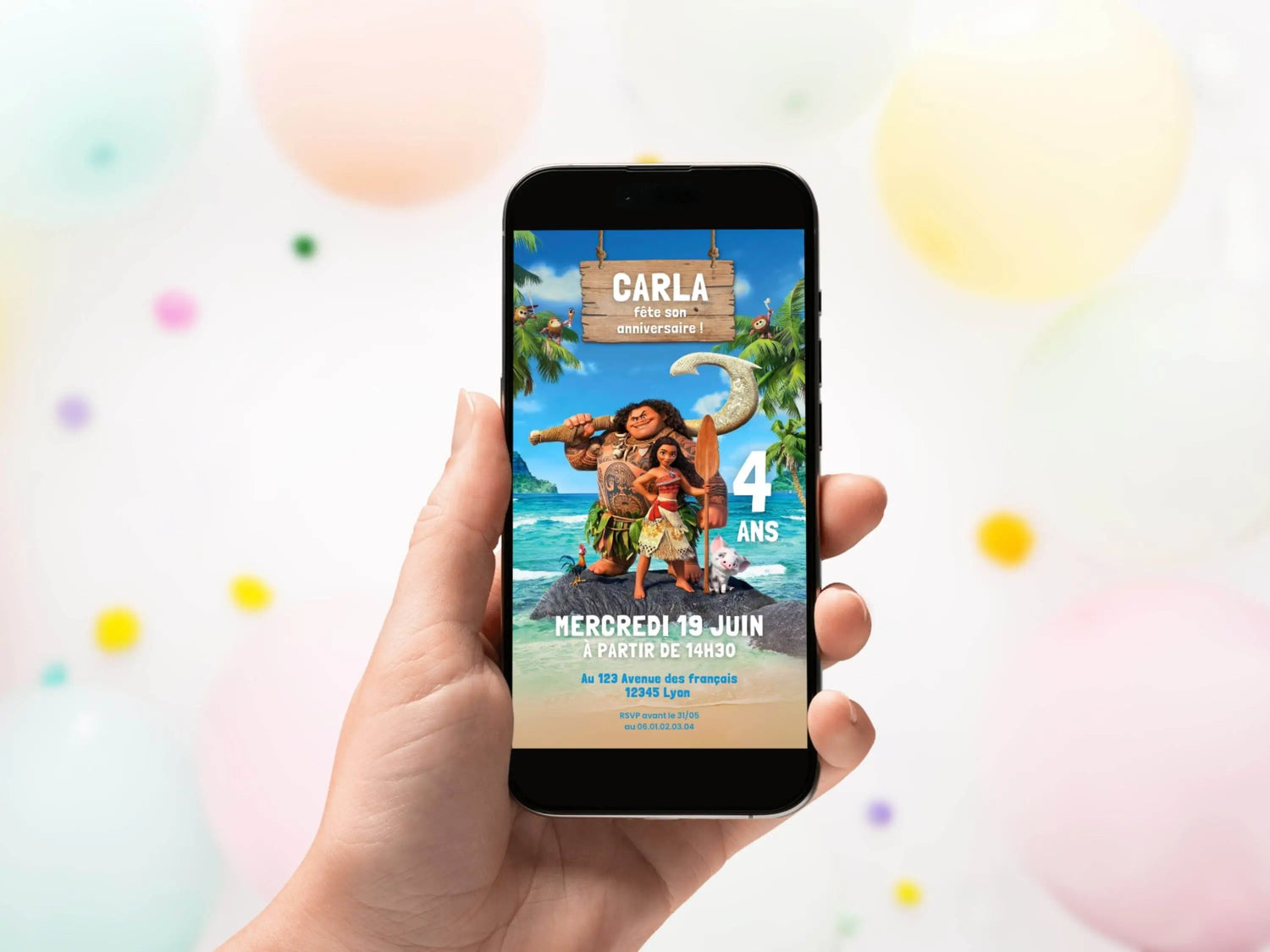 Invitation mobile personnalisée VAIANA